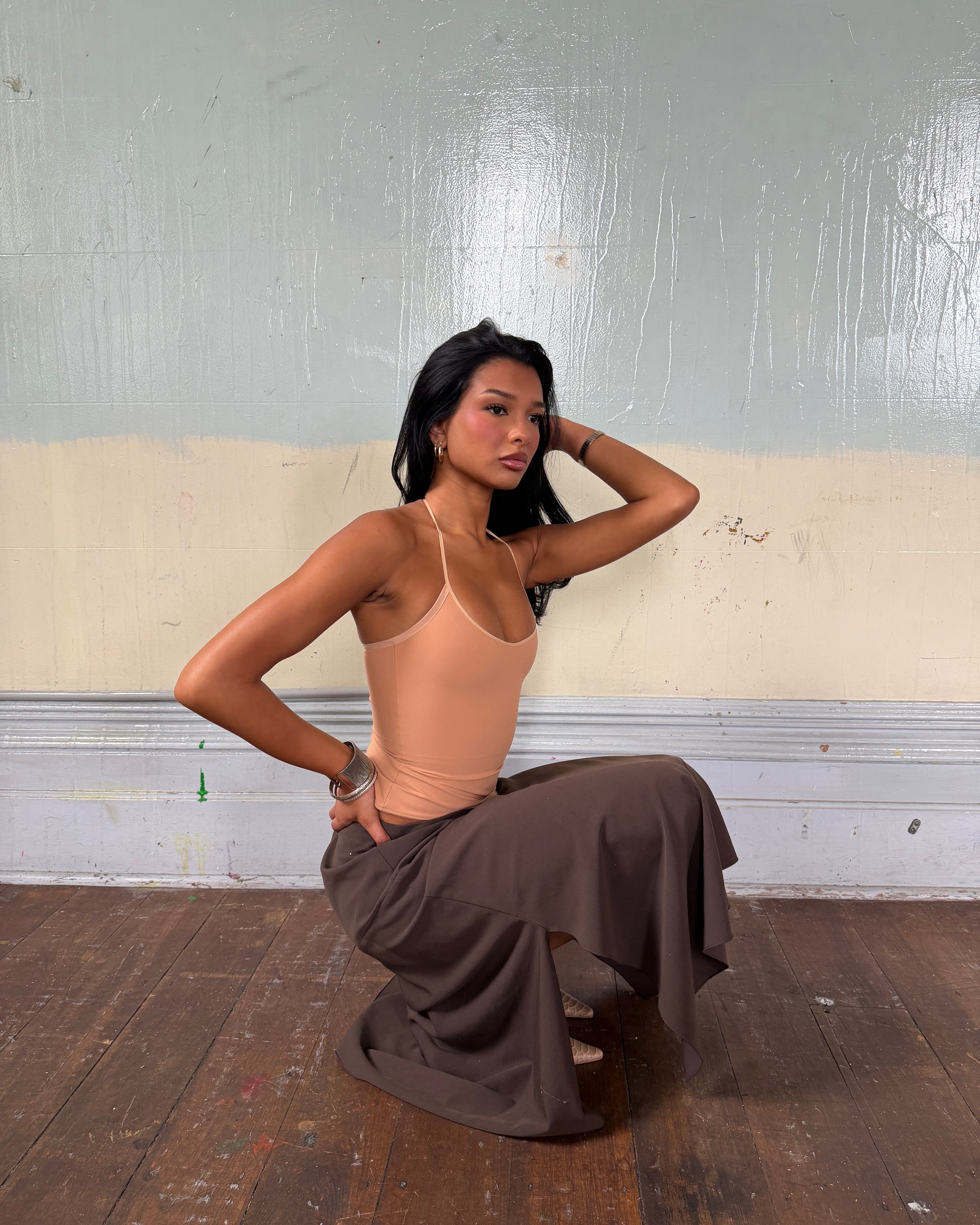 Soft lace trimming frames the edges for a subtle touch of romance, elevating the clean, minimal cut. Versatile, form-fitting and designed to elevate your everyday styling, the Latte Sculpt Halter pairs perfectly with everything from low-rise trousers to maxi skirts for a modern, understated look.